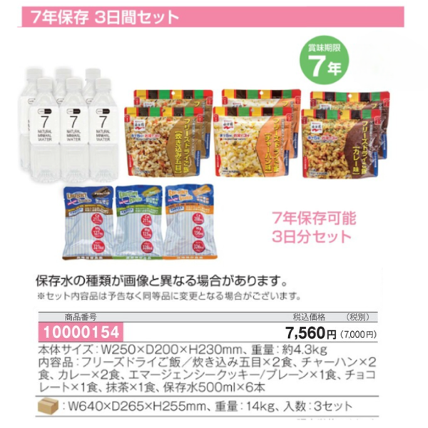 このセット1つで食事は3日間乗り切れます。1人分ずつに分かれているので、