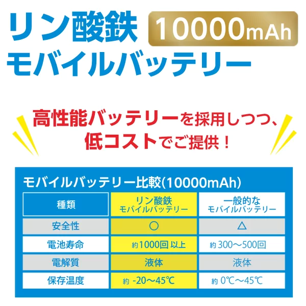 ◇リン酸鉄モバイルバッテリー(安全&長寿命)