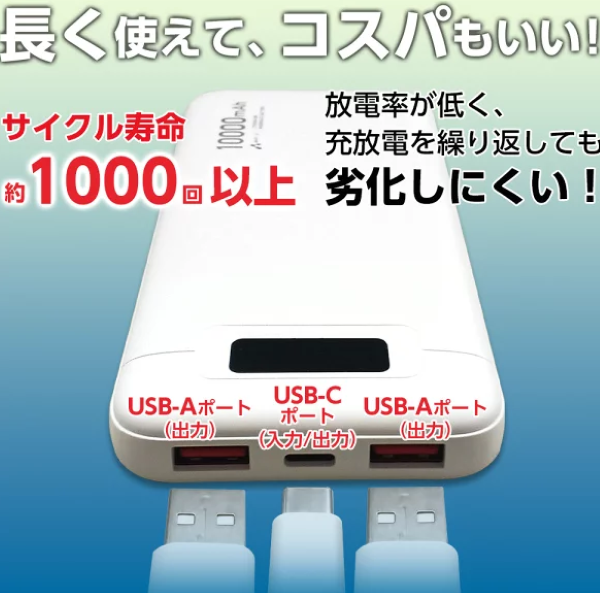 ◇充放電 1000回 可能 ◇容量:10,000mAh◇