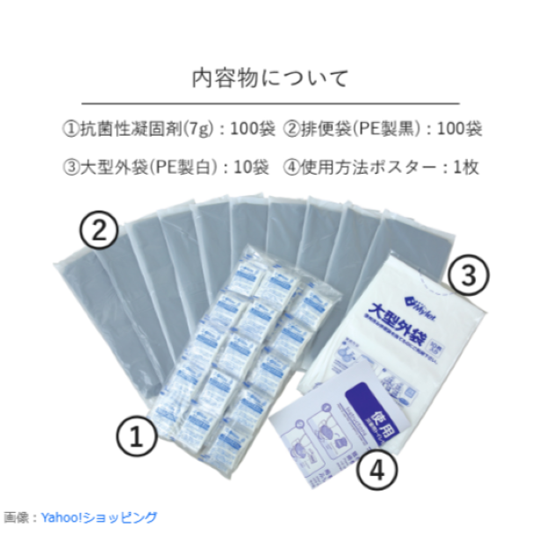 【人数×7個×3日】分を備蓄するのが鉄則です。◇凝固剤:抗菌性(7g)×100