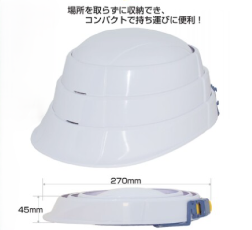 誰でも簡単に扱えるじゃばら形状を採用しつつ、安心感を提供するため、ヘルメットらしいデザインにもこだわりました。