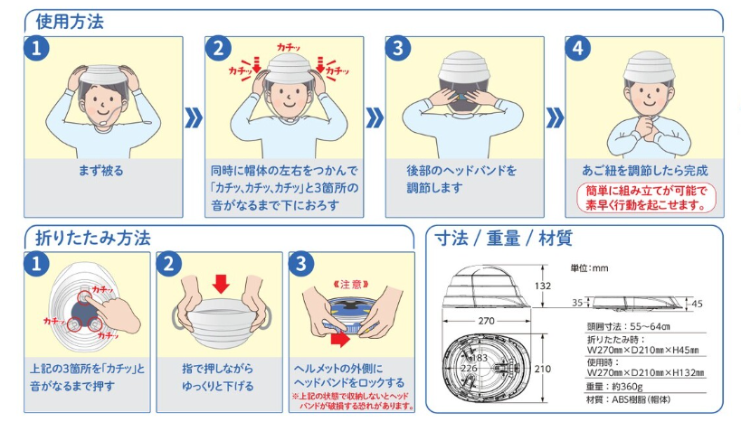 グラっと来たらヘルメット 最小サイズ箱収納時はA4サイズより小さい
