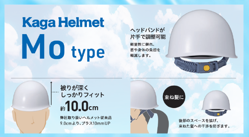 ◇ツバ無しタイプなので、閉所でも身軽に避難、物に引っかかる心配も軽減。